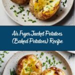 To elevate your Air Fryer Jacket Potatoes (Baked Potatoes) Recipe, classic garnishes like a pat of melting butter, dollops of sour cream, freshly chopped chives, shredded cheddar cheese, or crispy bacon bits really shine. They add creaminess, color, and bursts of flavor that turn a simple baked potato into a memorable meal.