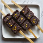 - Insert the Sticks: Cut the cooled brownies into square pieces roughly 2×2 inches in size. Insert one wooden skewer or popsicle stick into each brownie square, pushing through one side halfway through the brownie for stability.