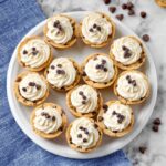 Top your filled cookie cups with mini chocolate chips or chopped pistachios for extra texture, color, and crunch. Then place them on a baking tray and refrigerate until you’re ready to serve, allowing the flavors to meld and the filling to set just right.