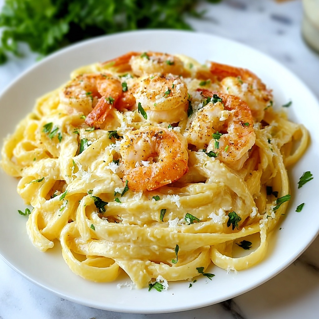 - Combine and Serve: Add the cooked pasta to the sauce and toss to coat fully. Gently fold in the cooked shrimp. Garnish with chopped parsley, additional Parmesan, or red pepper flakes if desired. Serve immediately.