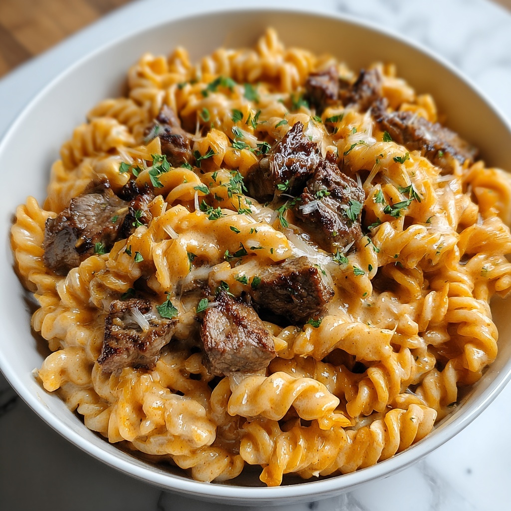 - Combine Pasta and Sauce: Add the cooked pasta and the browned steak back into the pan with the sauce. Toss everything together until the pasta and steak are well coated.