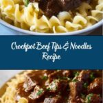 This Crockpot Beef Tips & Noodles recipe is a comforting and hearty slow-cooked meal perfect for busy days. Tender beef stew meat is simmered in a flavorful sauce made with beef broth, soy sauce, Worcestershire sauce, and Dijon mustard, then combined with creamy heavy cream, peas, and tender egg noodles for a complete and satisfying dish.