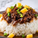 A sprinkle of sliced green onions adds a crisp, fresh finish that contrasts perfectly with the rich, saucy chicken. For a bit of extra flair, you might also add toasted sesame seeds or a wedge of lime to bring out the tropical vibes.