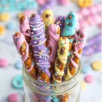 - Let Them Cool: Allow the pretzel rods to cool and set completely at room temperature or place them briefly in the refrigerator until the chocolate layers are firm. Once set, the Easter Pretzel Rods are ready to enjoy or gift!