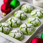These Festive Green Sugar Cookies are a delightful twist on classic sugar cookies, made with white cake mix for a soft, tender crumb and vivid green coloring perfect for holiday celebrations. Coated in a combination of granulated and powdered sugar, these cookies have a beautiful crackled appearance and a sweet, buttery flavor that will brighten any festive occasion.