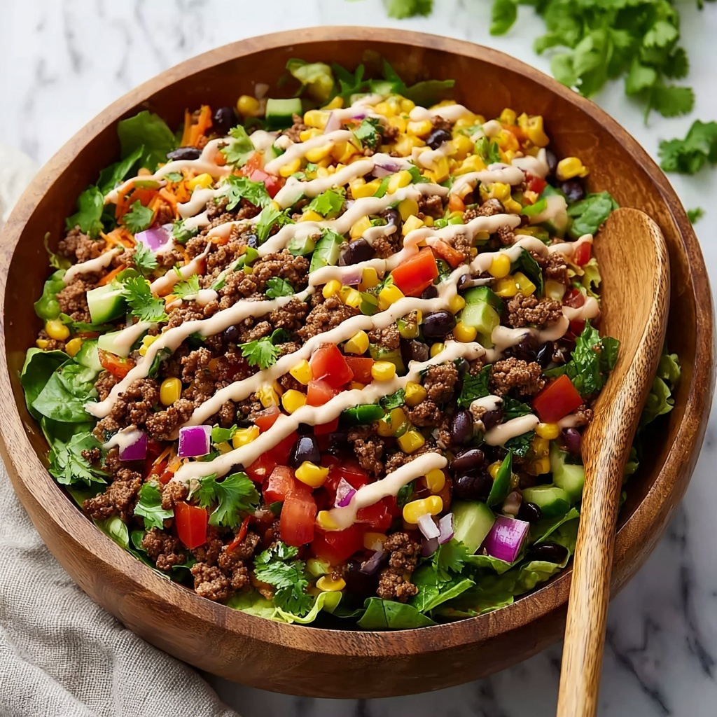 To reheat the ground beef, warm it gently in a skillet or microwave until steaming. Add it to fresh greens and toppings once warm. Avoid reheating everything together to keep the salad vibrant and crunchy.