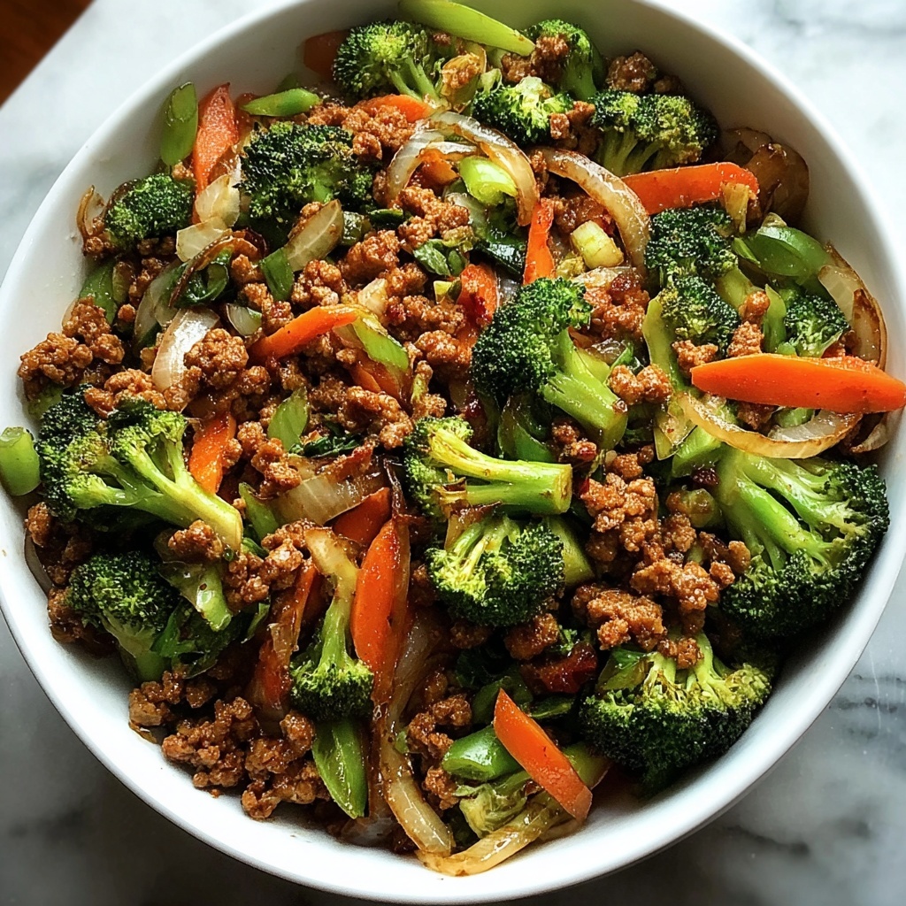 A quick and healthy Ground Turkey Stir Fry with Broccoli featuring tender vegetables and savory soy-ginger sauce, perfect for a nutritious weeknight dinner served over rice or noodles.