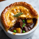 This Guinness Braised Beef Pot Pie offers a hearty and comforting meal, featuring tender beef chuck slowly braised in rich Guinness stout and beef broth, combined with vegetables and herbs, then topped with flaky puff pastry. Perfect for a cozy dinner, this recipe blends deep flavors with a classic pot pie finish.