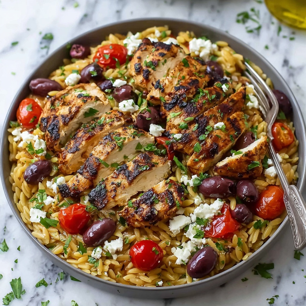 This Healthy Mediterranean Chicken Orzo is a vibrant, nutrient-rich dish featuring tender chicken breast cooked with whole wheat orzo, fresh spinach, grape tomatoes, Kalamata olives, and fragrant herbs. Toasted pine nuts and crumbled feta cheese add delightful texture and flavor, making it a wholesome and satisfying meal perfect for weeknight dinners.