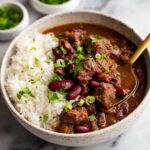 A classic Louisiana dish featuring slow-simmered red kidney beans with smoked turkey wings, andouille sausage, and the traditional ‘holy trinity’ of vegetables, served over steamed white rice. This hearty, flavorful recipe captures the authentic taste of Creole cooking with a perfect balance of spices and smoky meats.