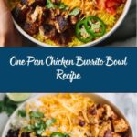 This One Pan Chicken Burrito Bowl is a flavorful and convenient meal featuring seasoned chicken, rice, black beans, corn, and tomatoes cooked all together in a single skillet. Topped with melted cheddar cheese, fresh cilantro, and a squeeze of lime juice, this recipe offers a delicious Mexican-inspired dish perfect for a quick weeknight dinner or meal prep.