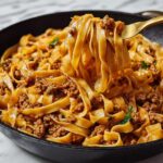 This One-Pot Beef Ragu Pasta is a hearty and comforting Italian-inspired dish that combines succulent ground beef with aromatic vegetables and herbs, simmered in a rich tomato and red wine sauce. Cooking the pasta directly in the sauce-infused broth creates an intensely flavorful, easy-to-make meal perfect for weeknight dinners.