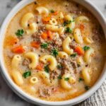 This One-Pot Macaroni Cheeseburger Soup is a comforting and hearty dish that combines the flavors of a classic cheeseburger with creamy, cheesy macaroni soup. Made in a single pot, it features ground beef, cheddar and mozzarella cheeses, tender elbow macaroni, and flavorful seasonings, perfect for a satisfying weeknight meal.
