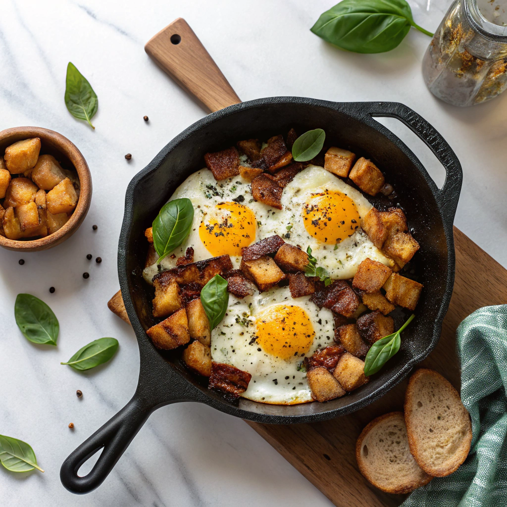 - Serve It Up: Remove the skillet from heat. Serve the potato egg scramble hot, optionally garnished with fresh herbs like parsley or additional cheese for extra flavor.