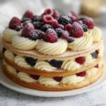 A delightful French-inspired dessert featuring golden, flaky puff pastry layered with smooth vanilla pastry cream and fresh mixed berries, topped with a glossy apricot glaze. This Puff Pastry Cream and Berry Cake is elegant and perfect for special occasions or a luxurious treat.
