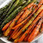 A simple and delicious recipe for roasted asparagus and carrots, perfectly seasoned and caramelized to bring out their natural sweetness. This healthy side dish is quick to prepare and ideal for pairing with roasted meats, fish, or grain bowls.