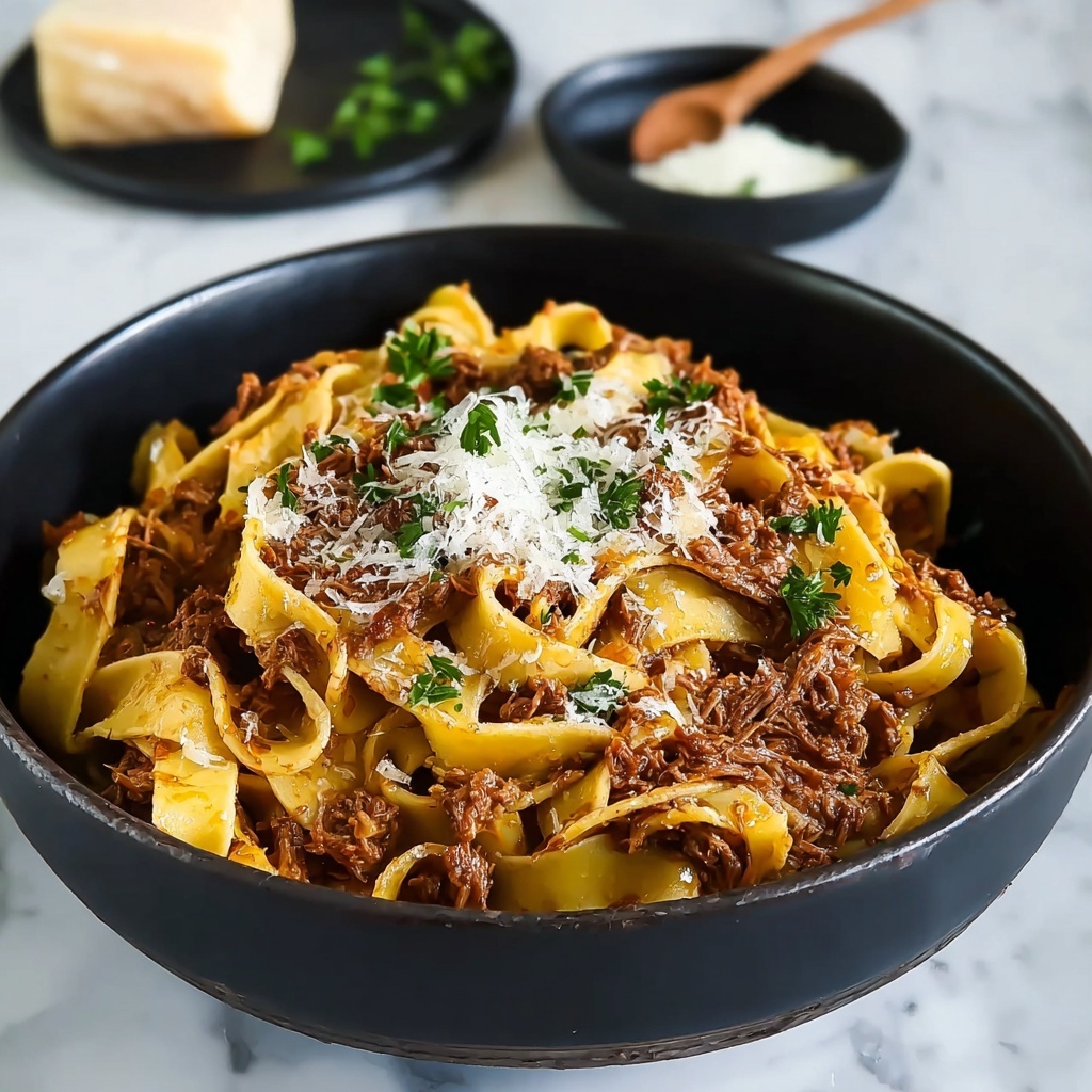 Cook your pappardelle or tagliatelle in plenty of salted boiling water until al dente. Drain and then toss the noodles generously with the ragu, allowing the sauce to cling to every ribbon. Serve immediately, garnished with chopped parsley and freshly grated Parmigiano Reggiano to add freshness and a savory finish that will have everyone asking for seconds.