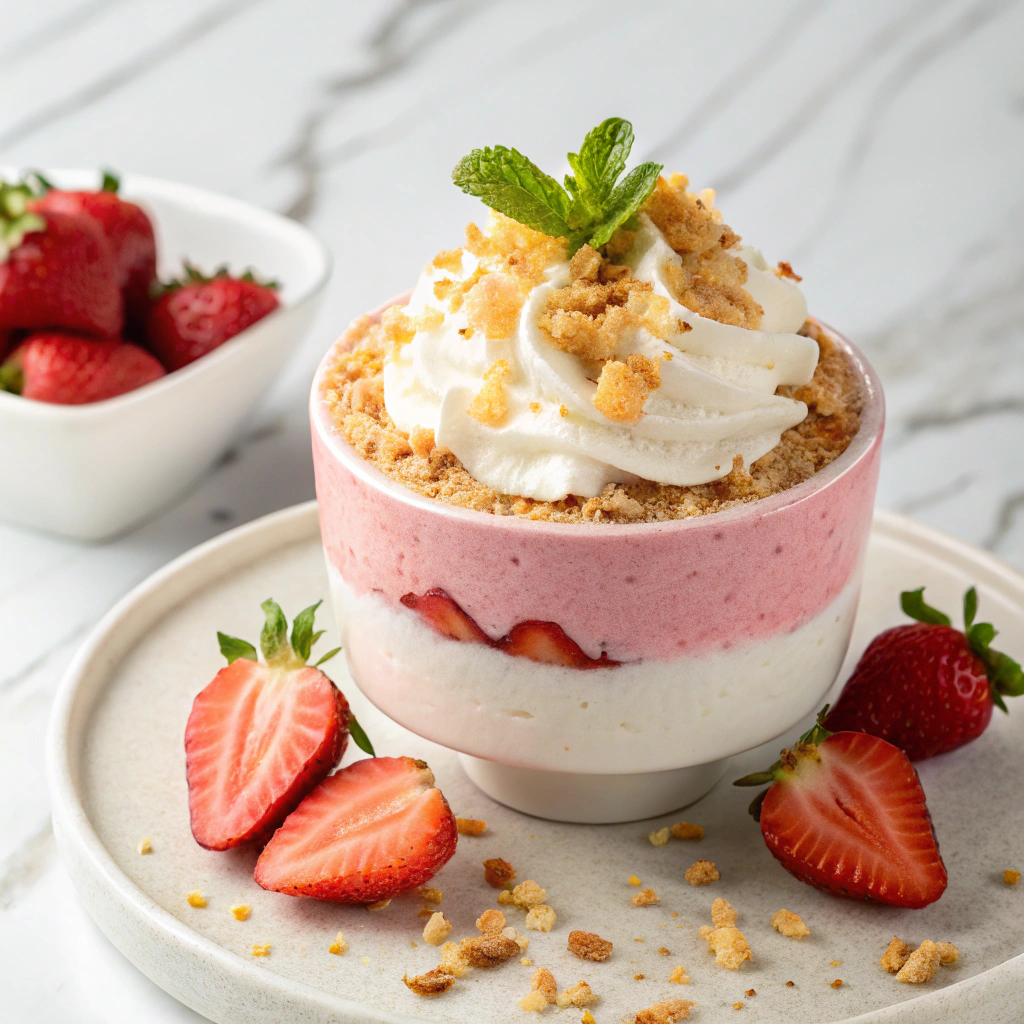 - Add the Toppings: Sprinkle crushed shortbread cookies over the top for added crunch and texture. Garnish with extra fresh strawberries.