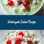 While the cherries are traditional and visually charming, you could also try a light dusting of coconut flakes or a few pistachio nuts on top for an added texture and hint of nutty flavor. No matter what you choose, a well-chosen garnish makes your Watergate Salad Recipe even more inviting.